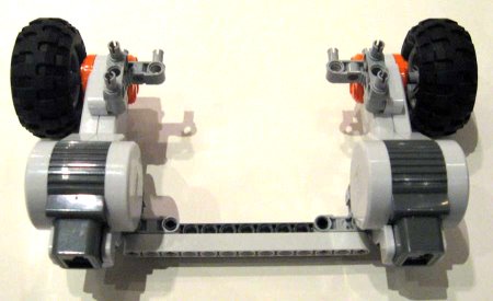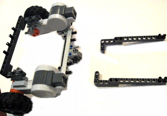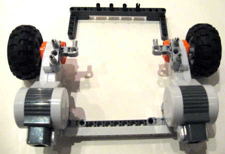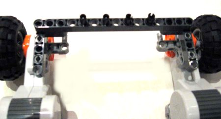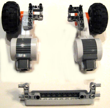 Step 3: Build a rear crossbar to hold the motors in the right place, and add the tires.