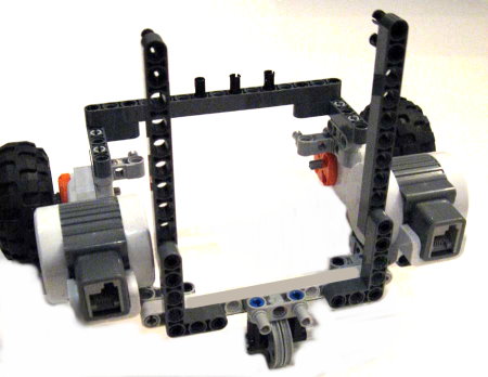Because we need to be able to attach a motorized claw to our robot, we're going to build a whole new robot, with room underneath for a motorized attachment. Follow the steps below to build your robot: