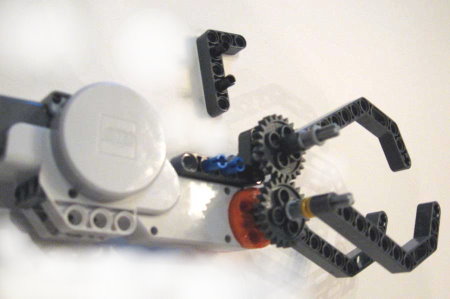 In the last challenge you created a passive (fixed in place) attachment, and used it to get your robot to pick up and retrieve several objects in its path. You used the motion of the robot to help it pick up the objects. In today's lesson, we are going to build a motorized (claw) attachment, and use it to accomplish a task. We will also learn how to use LEGO Mindstorms "My Blocks" to simplify our programming.