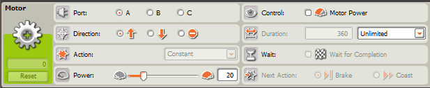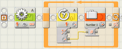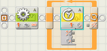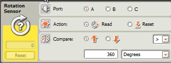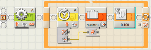 - Inside the loop, read the Rotation Sensor (on the Sensors Menu) for Motor "A".