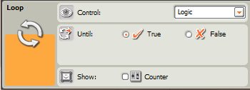 Add a loop so we can repeatedly check if the claw has fully opened. We'll stop looping if it has, so set the loop control to "Logic".